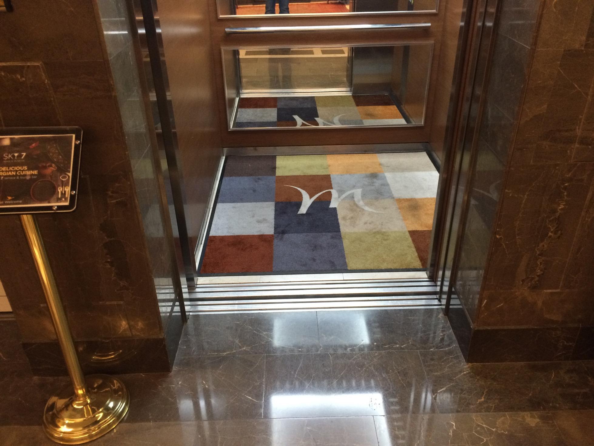 In hotels main entrance was equipped branded mat EMCO Outdoor, Also in the elevator was used EMCO Image.